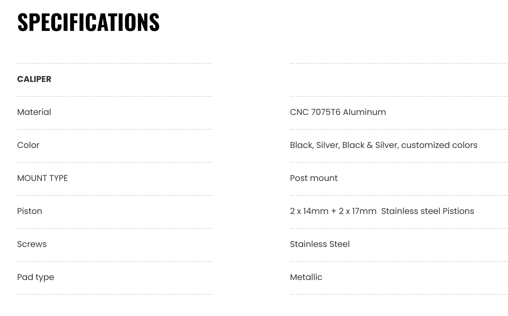 14mm+17mm 4 Stainless steel pistons with Metallic Pads.